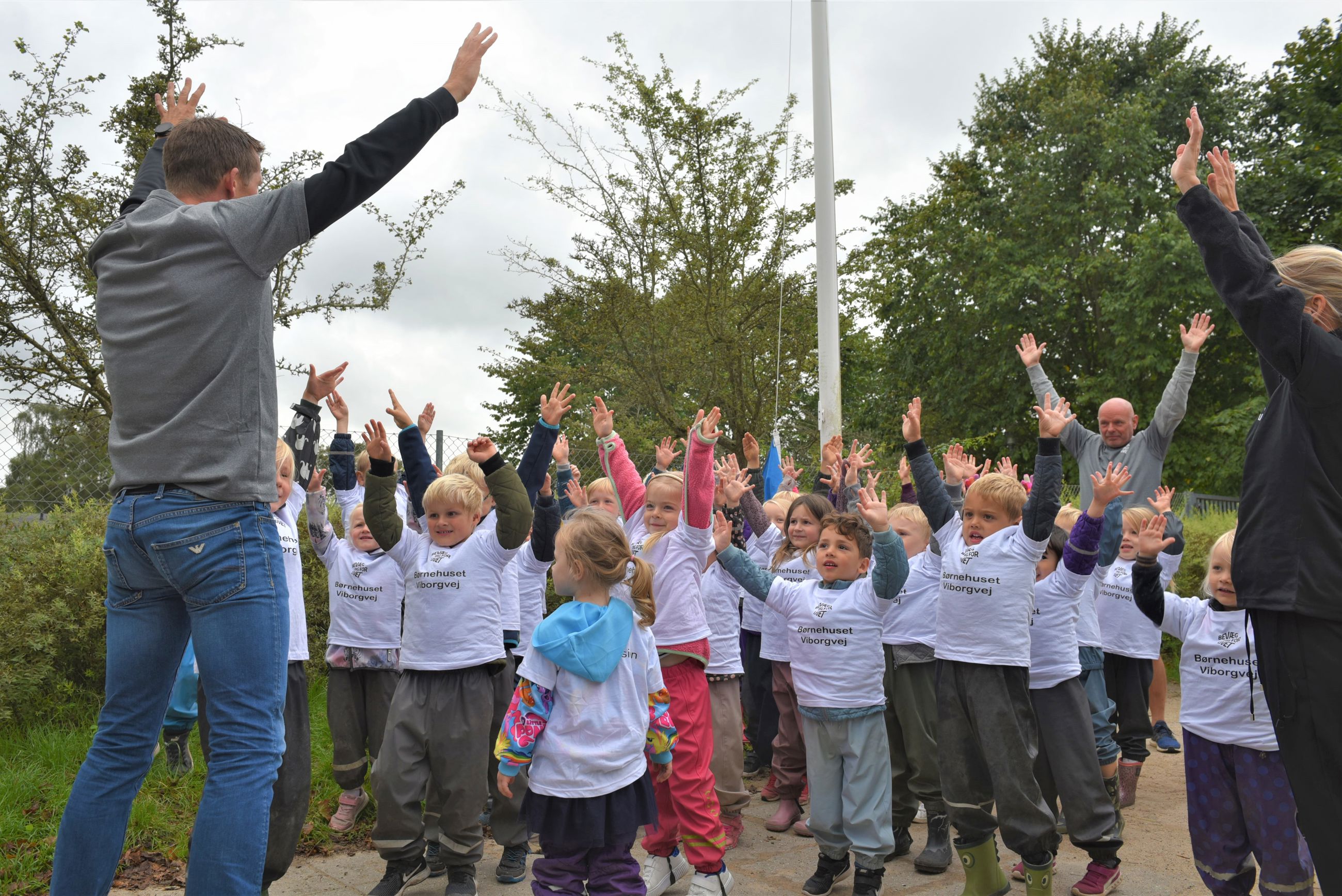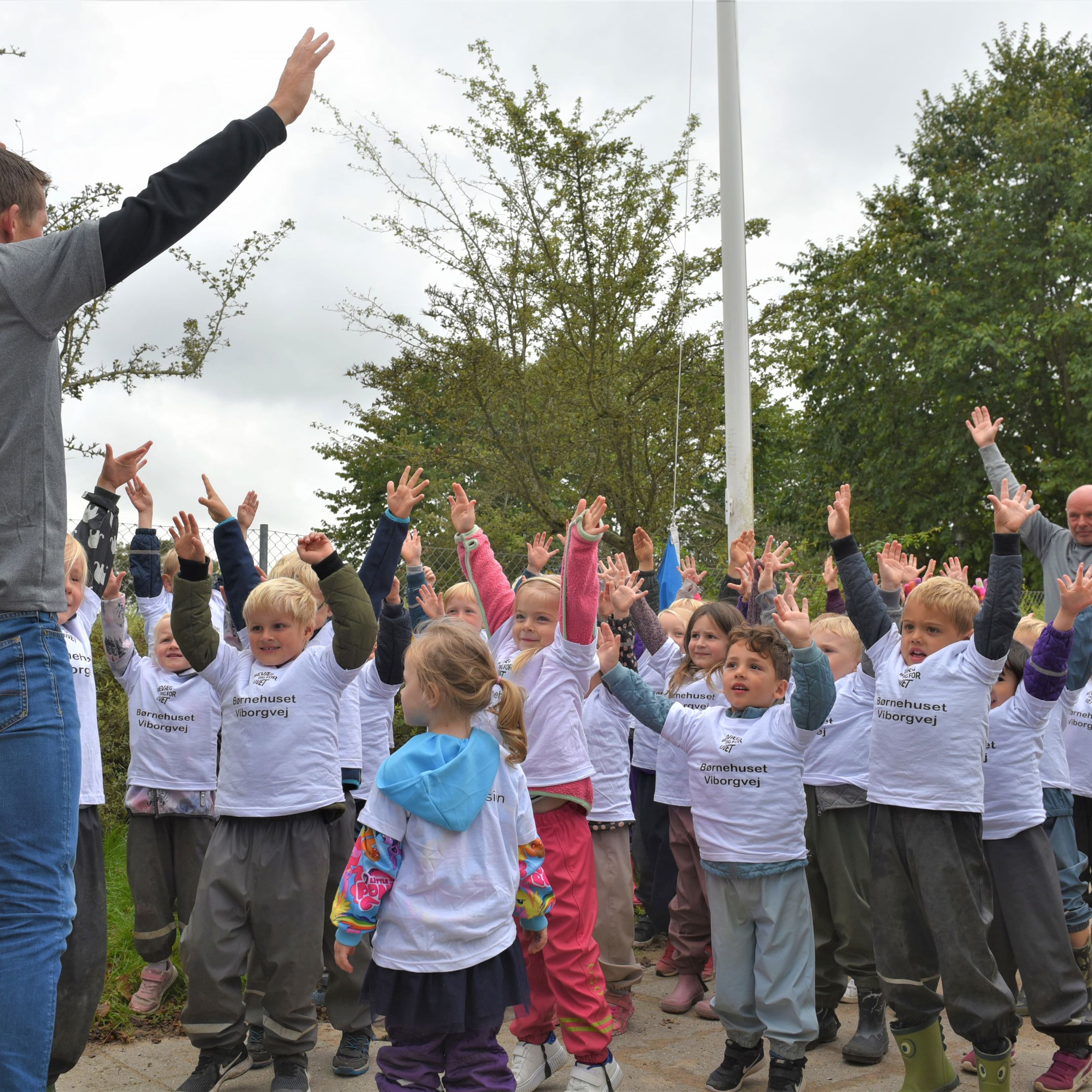 Vi har også modtaget Friluftsrådet Spring Ud-flag, som viser, at vi laver bevægelsesaktiviteter. Vi bruger dagligt bevægelse i naturen eller på legepladsen og har i det hele taget stort fokus på, at børnene bruger kroppen og bevæger sig hver dag i både vuggestuen og børnehaven.